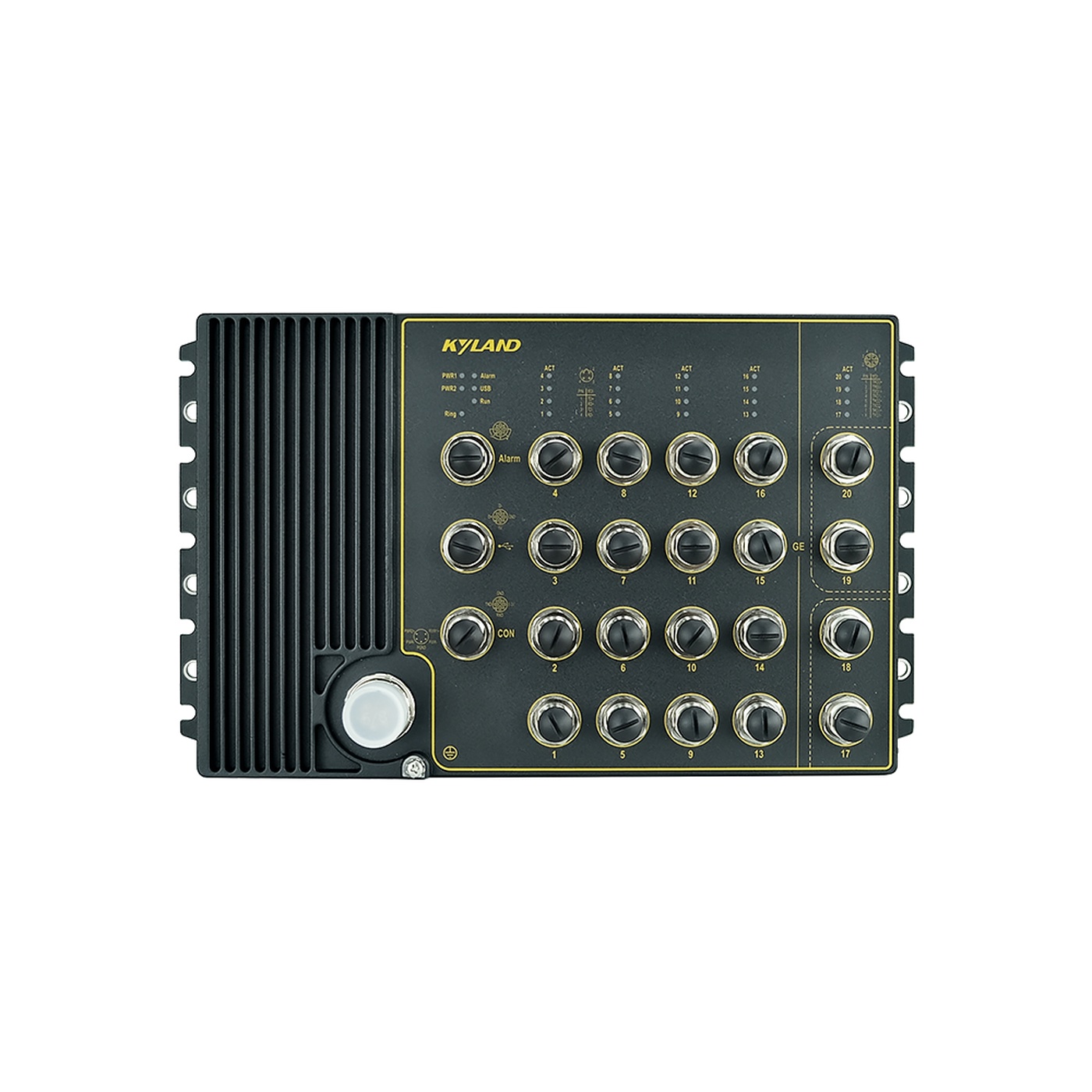 Промышленный 20-портовый управляемый коммутатор 2 уровня, 4 x 10/100/1000M Base-T(X) M12, 16 x 10/100M Base-TX M12, резервируемое питание 24-48 В, EN50155, IP65, -40...+70C