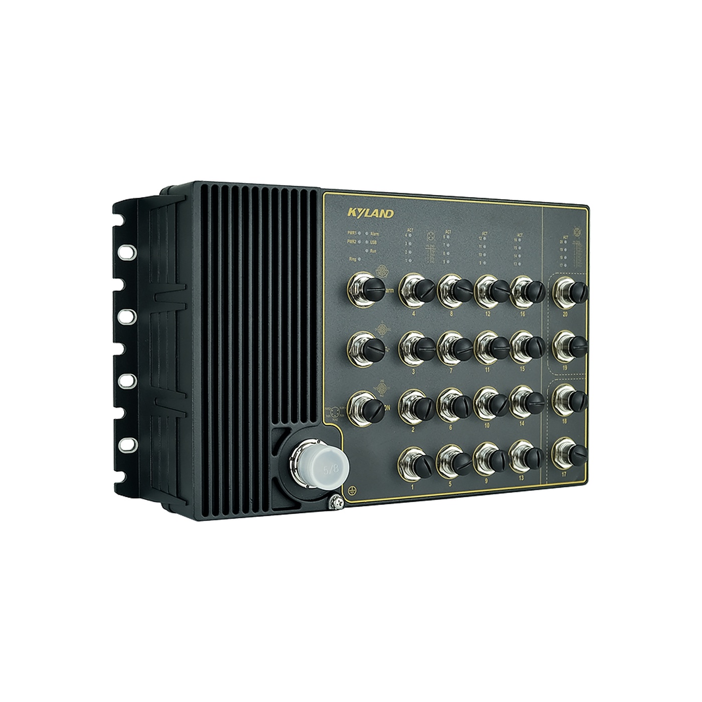 Промышленный 28-портовый управляемый коммутатор 2 уровня, 4 x 10/100/1000M Base-T(X) M12, 24 x 10/100M Base-TX M12 PoE, Bypass, резервируемое питание 72-110 В, EN50155, IP65, -40...+70C