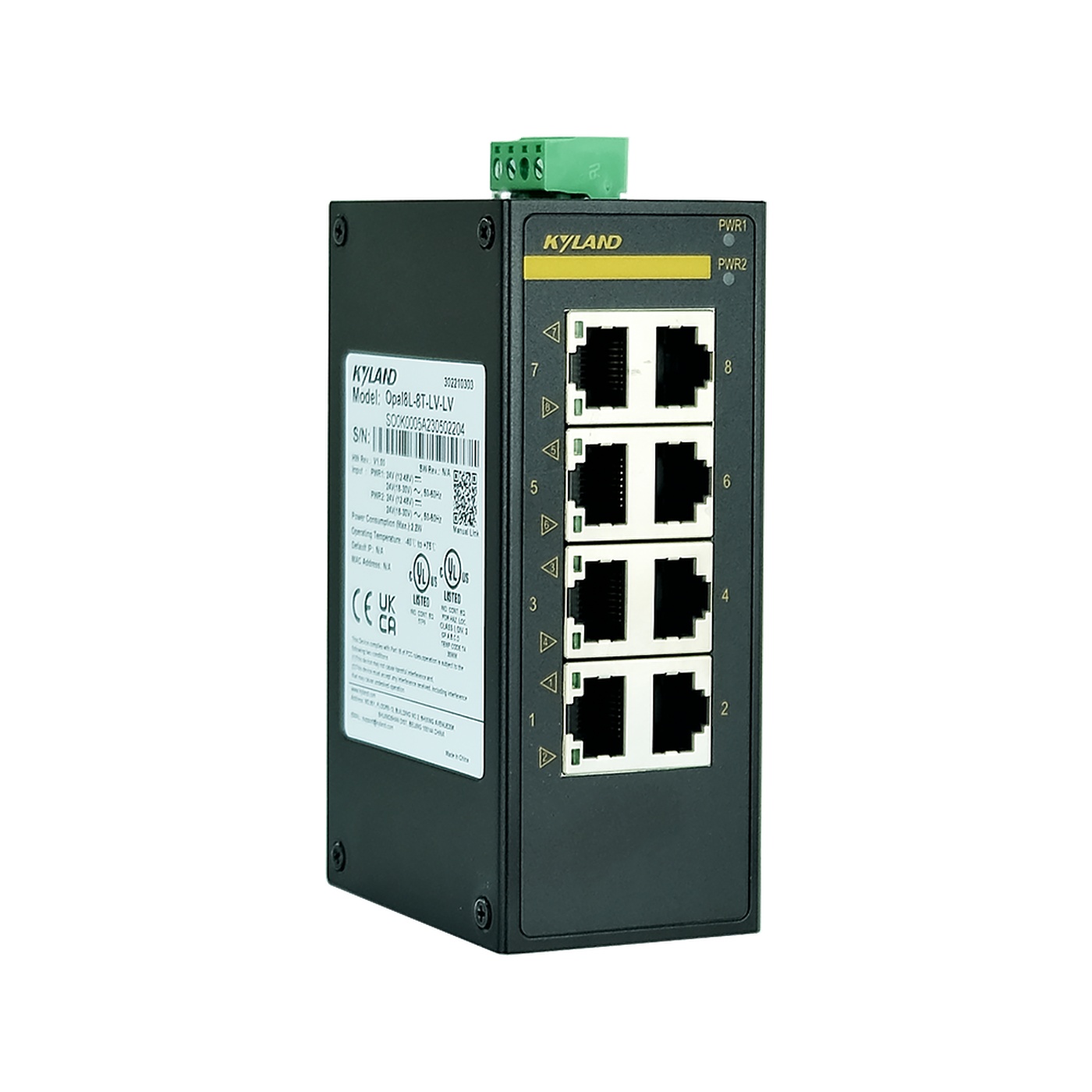 Промышленный 8-портовый неуправляемый коммутатор, 8 портов 10/100Base-T(X) RJ45, резервируемое питание 12-48VDC/18-30VAC, IP30, -40...+75C
