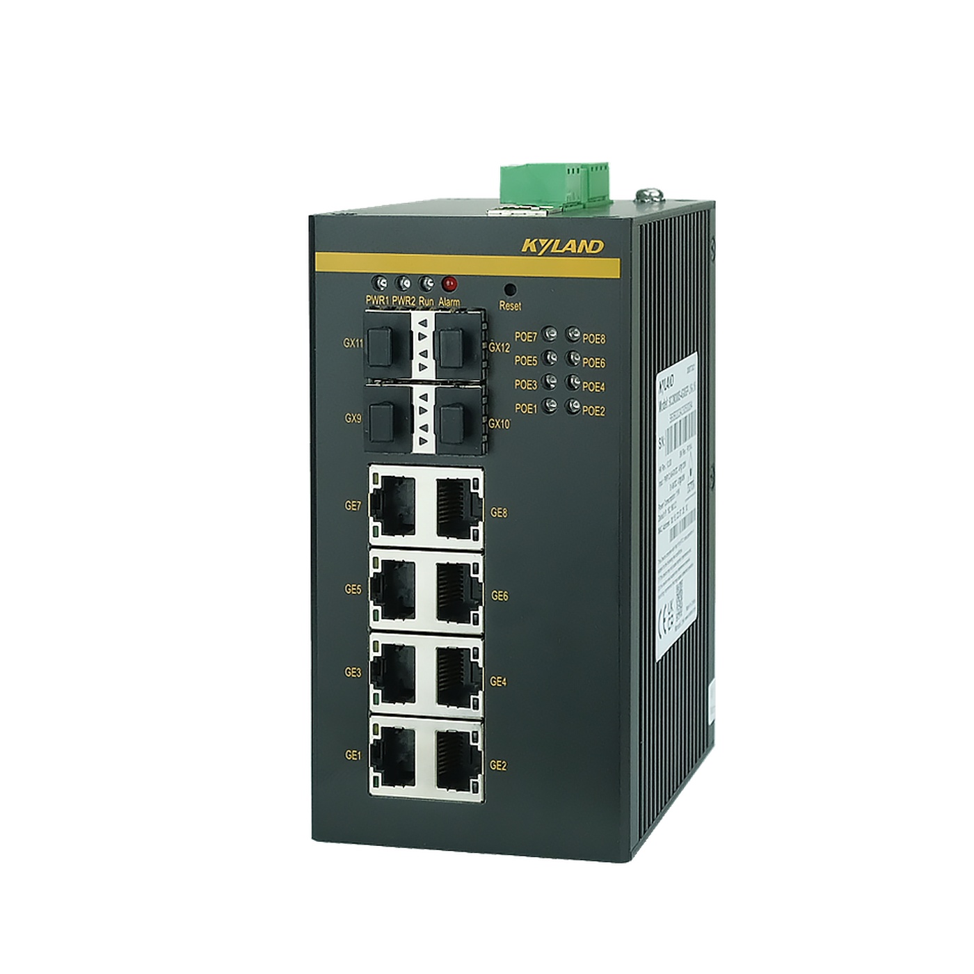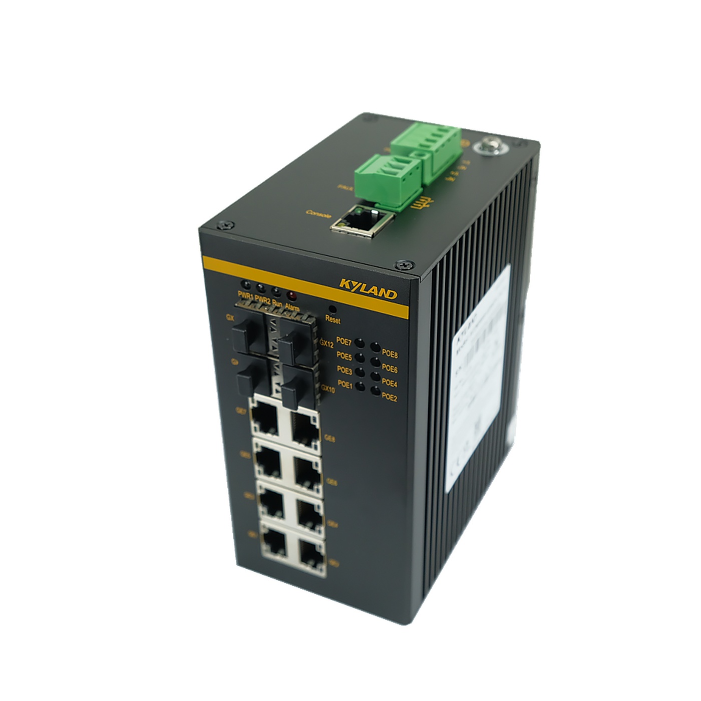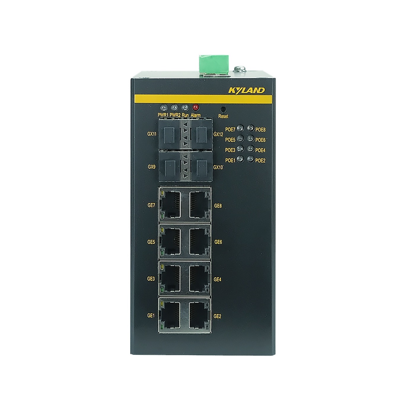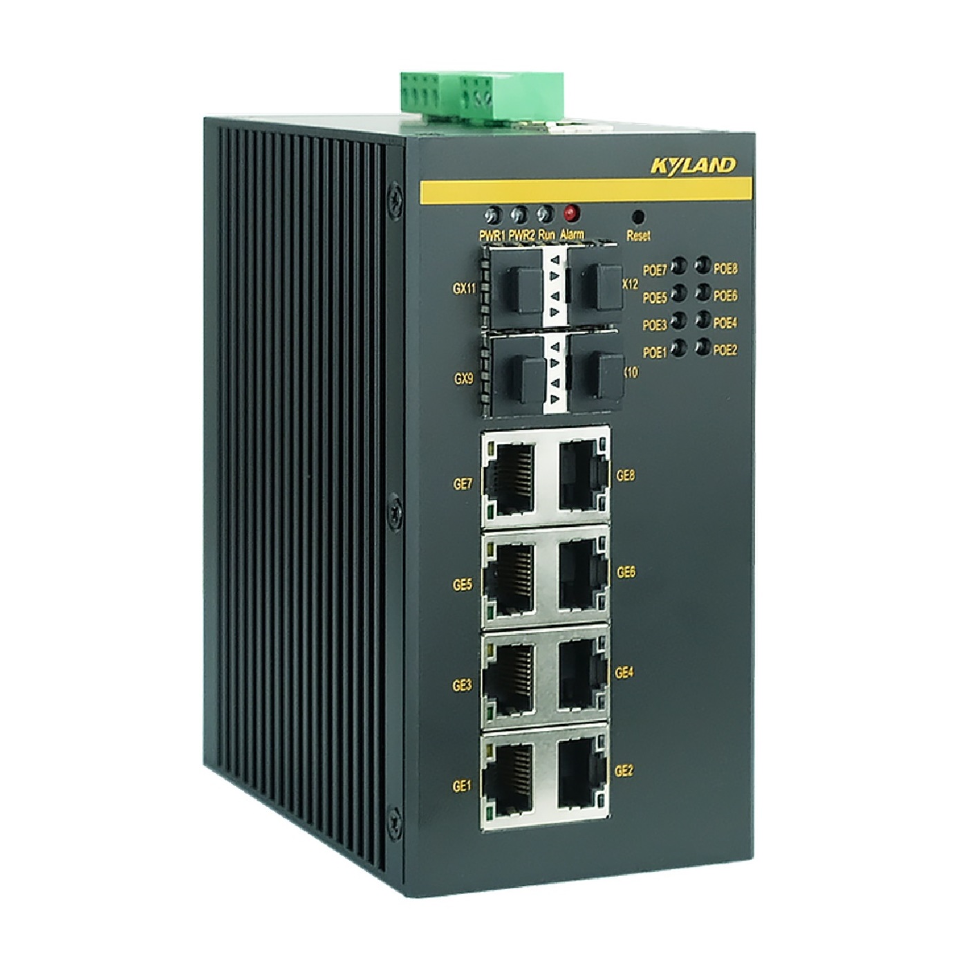 Промышленный управляемый L2 PoE коммутатор, IEEE1588, 4 слота 100/1000Base-X SFP, 8 портов 10/100/1000BASE-T(X) RJ45 PoE, резервируемое питание 18-57 В, IP30, -40...+75C