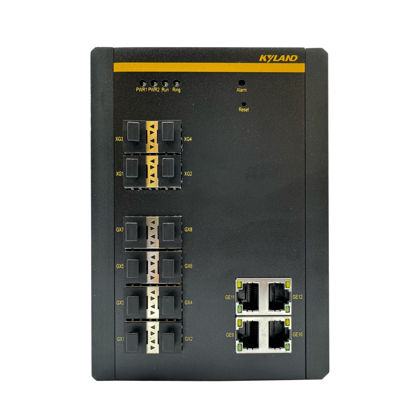 Промышленный 16-портовый управляемый L2 коммутатор, 4 слота 10GBase-X SFP+, 8 слотов 100/1000Base-X SFP, 4 порта 10/100/1000Base-T(X), 48VDC (36-72VDC), резервир. питание, IP40, IEEE 1588, -40...+75C