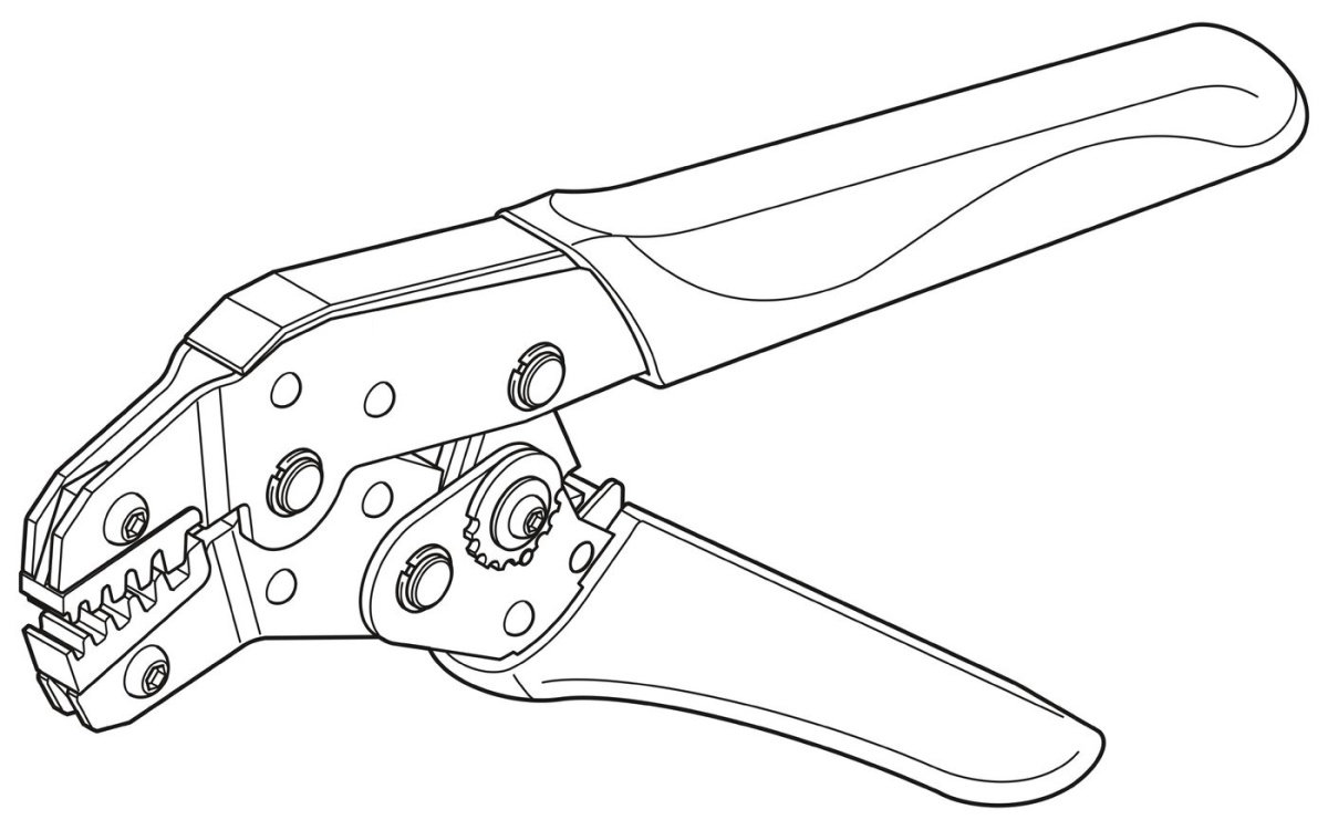 Опрессовочные клещи, для кабельных наконечников без изолирующего хомута согласно DIN 46228 части 1 и наконечников с хомутом согласно DIN 46228 части 4, 0,25 мм² ... 6,0 мм², ввод сбоку, форма обжима - трапеция