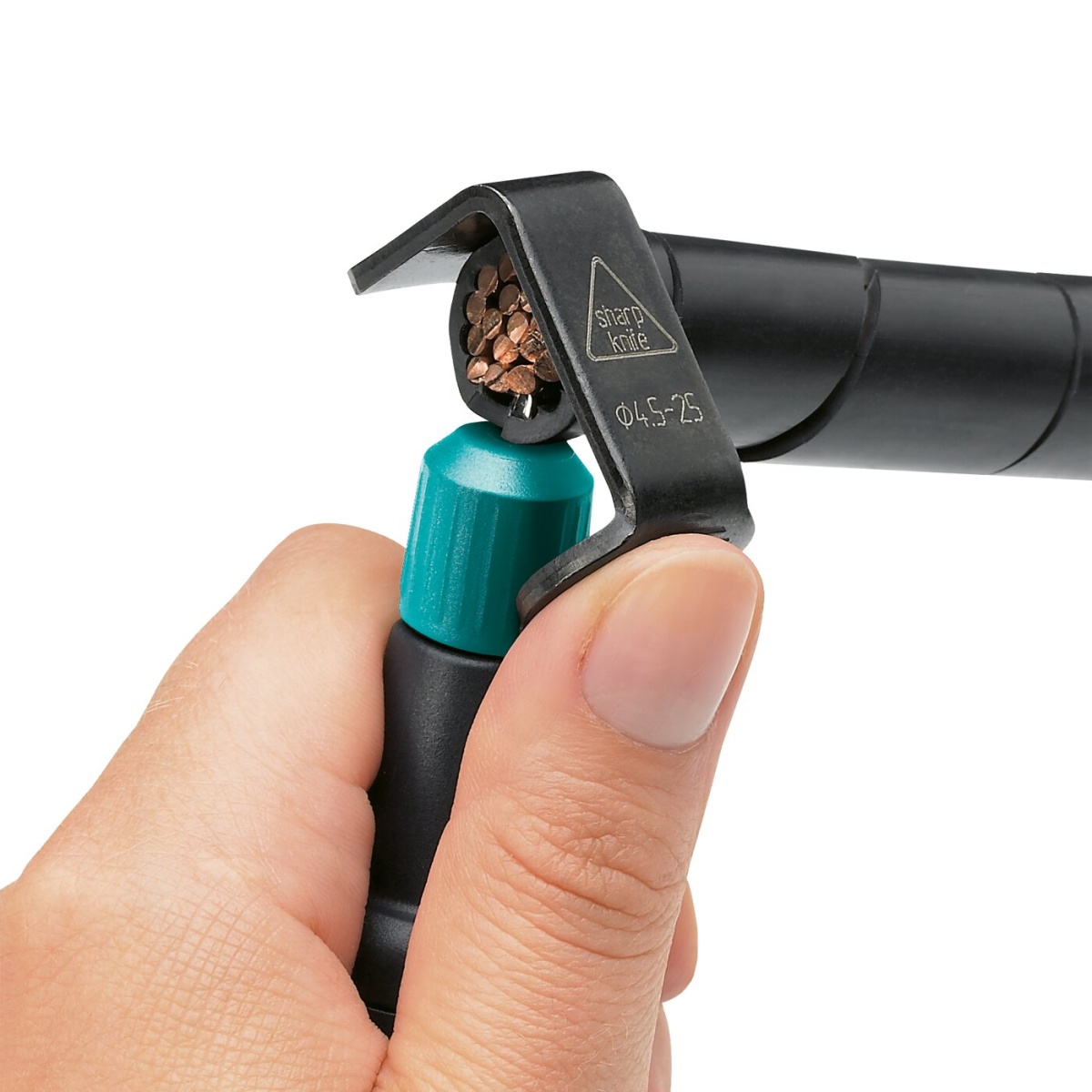 Инструмент для снятия оболочки, с кабелей диаметром 4,5 мм - 40 мм, толщина изоляции до 4,5 мм, шарнирный нож для выполнения круглых, продольных и спиральных надрезов