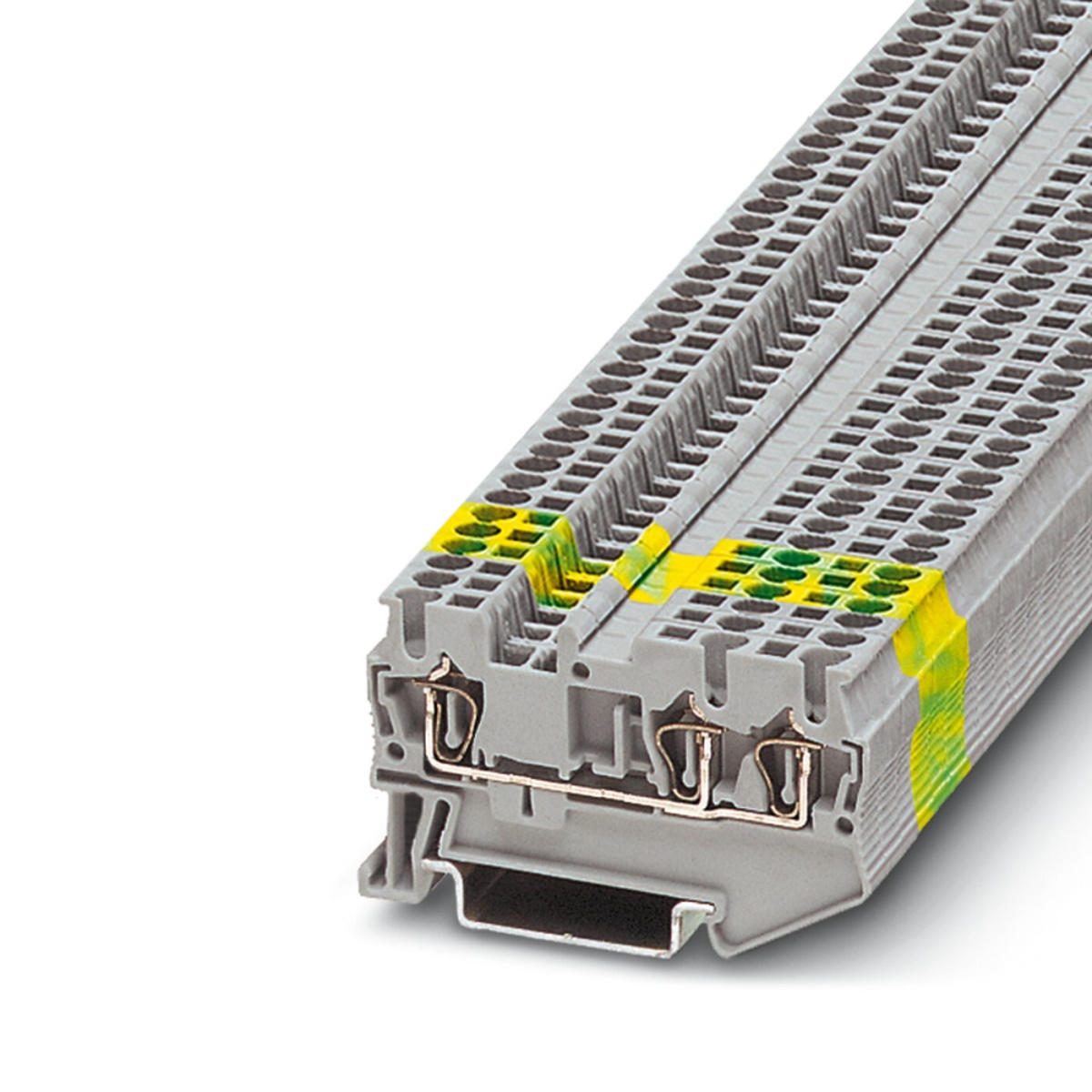 Проходные клеммы, номинальное напряжение: 500 В, номинальный ток: 17,5 A, тип подключения: Пружинный зажим, Расчетное сечение: 1,5 мм², cечение: 0,08 мм² - 1,5 мм², тип монтажа: NS 35/7,5, NS 35/15, цвет: cерый
