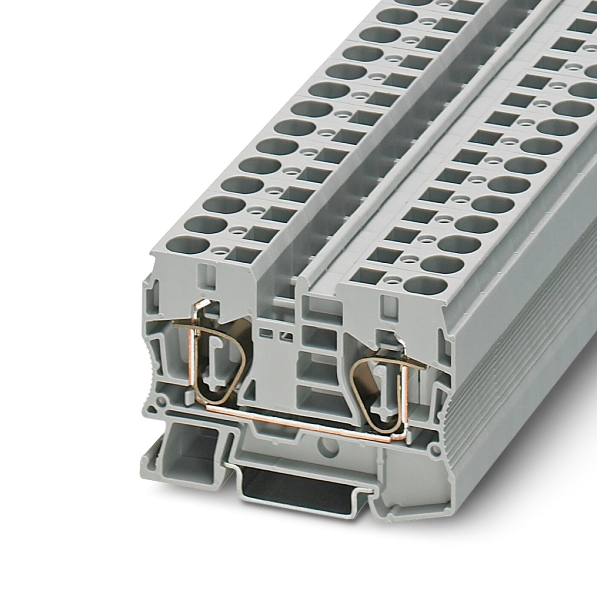 Проходные клеммы, номинальное напряжение: 1000 В, номинальный ток: 57 A, тип подключения: Пружинный зажим, 1. ярус, Расчетное сечение: 10 мм², cечение: 0,2 мм² - 16 мм², тип монтажа: NS 35/7,5, NS 35/15, цвет: cерый