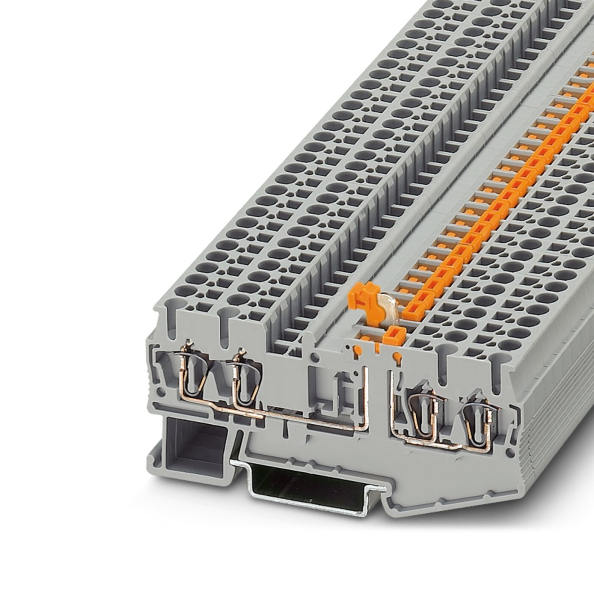 Клеммы с ножевыми размыкателями, номинальное напряжение: 400 В, номинальный ток: 20 A, 1. ярус, тип подключения: Пружинный зажим, Расчетное сечение: 2,5 мм², cечение: 0,08 мм² - 4 мм², монтаж: NS 35/7,5, NS 35/15, цвет: cерый