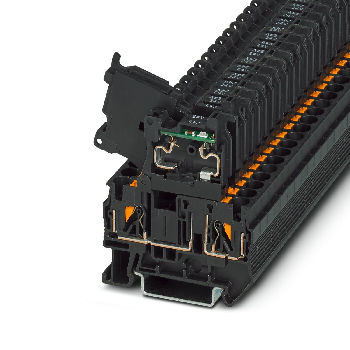 Рычажные клеммы с держателем предохранителя, цвет черный, для блоков предохранителей 5 x 20 мм, с индикатором для 24 В AC/DC