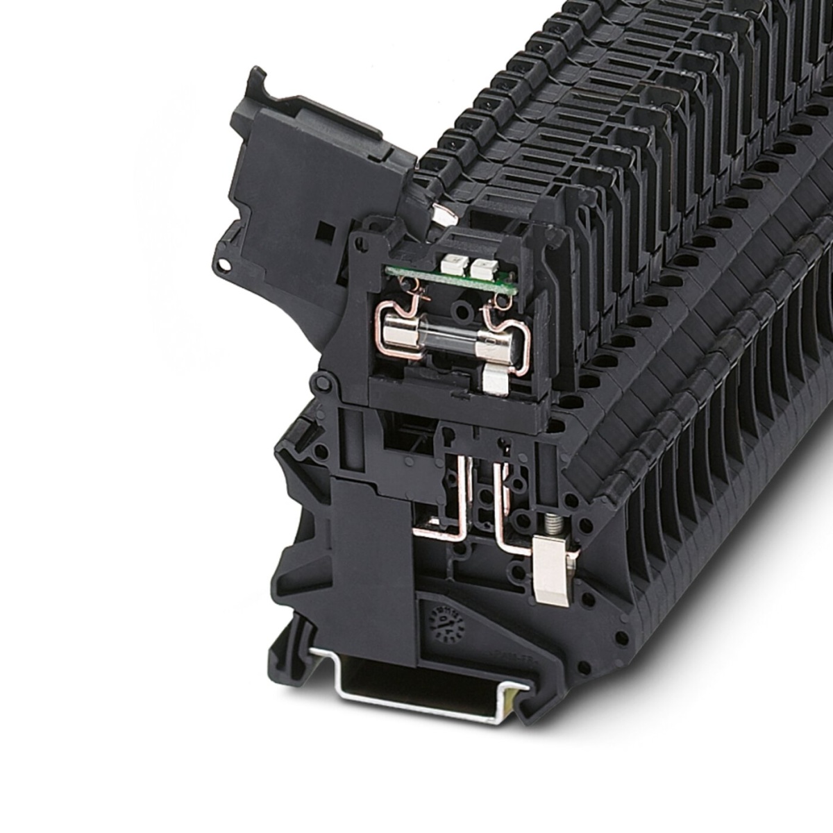 Рычажные клеммы с держателем предохранителя, цвет черный, для блоков предохранителей 5 x 20 мм, с индикатором для 24 В AC/DC