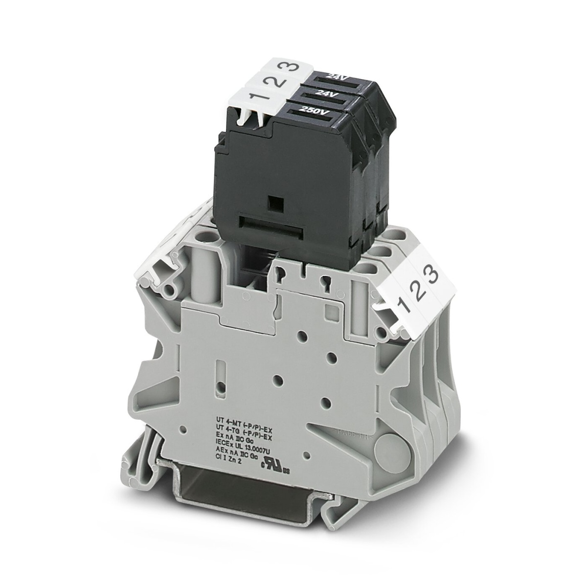 Клеммы с ножевыми размыкателями, номинальное напряжение: 500 В, номинальный ток: 20 A, тип подключения: Винтовые зажимы, Расчетное сечение: 4 мм², cечение: 0,14 мм² - 6 мм², монтаж: NS 35/7,5, NS 35/15, цвет: cерый