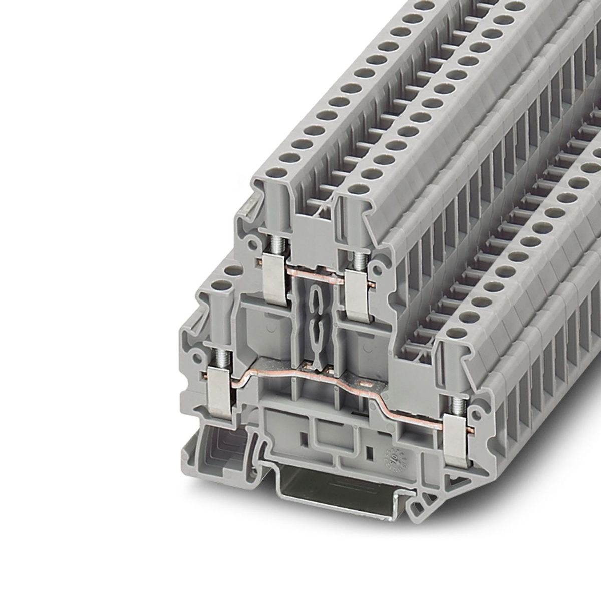 Двухъярусные клеммы, номинальное напряжение: 500 В, номинальный ток: 24 A, тип подключения: Винтовые зажимы, Расчетное сечение: 2,5 мм², cечение: 0,14 мм² - 4 мм², тип монтажа: NS 35/7,5, NS 35/15, цвет: cерый