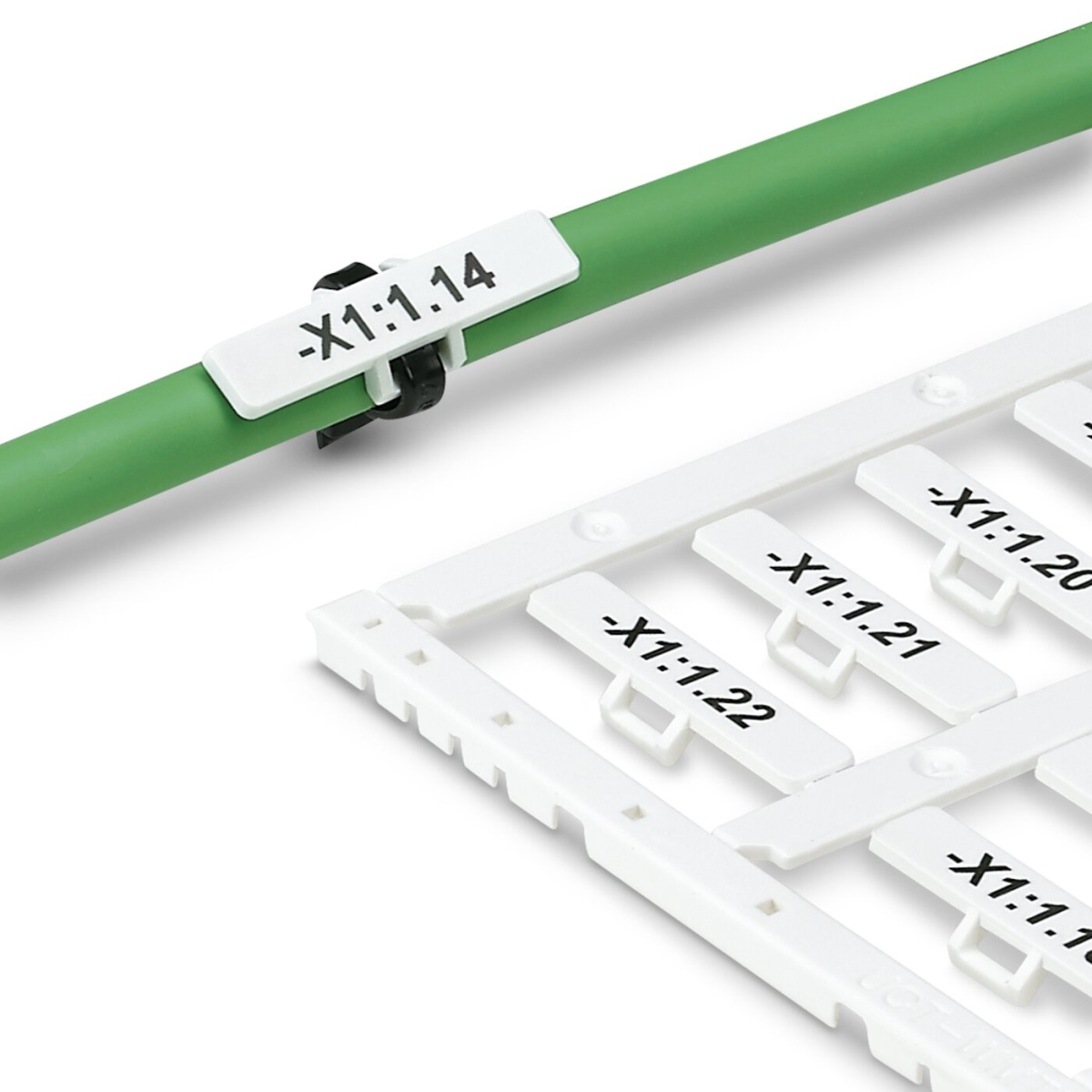 Маркер для кабелей, Пластина, белый, без надписи, маркируется с помощью: TOPMARK NEO, TOPMARK LASER, BLUEMARK ID COLOR, BLUEMARK ID, BLUEMARK CLED, THERMOMARK PRIME, THERMOMARK CARD 2.0, THERMOMARK CARD, тип монтажа: Монтаж кабельной стяжкой, диаметр кабеля: > 5 мм, размер маркировочного поля: 24 х 4 мм, Количество отдельных табличек: 15