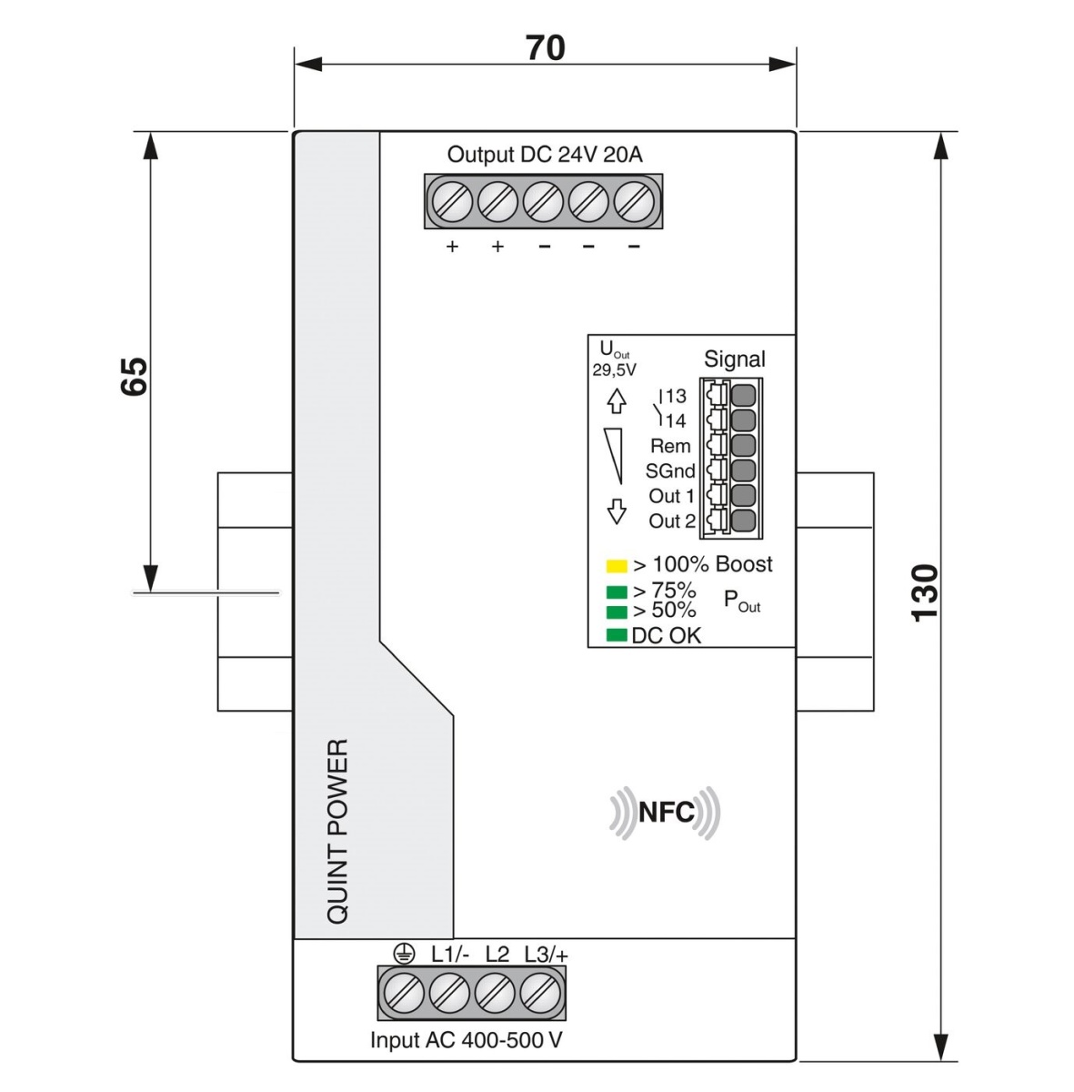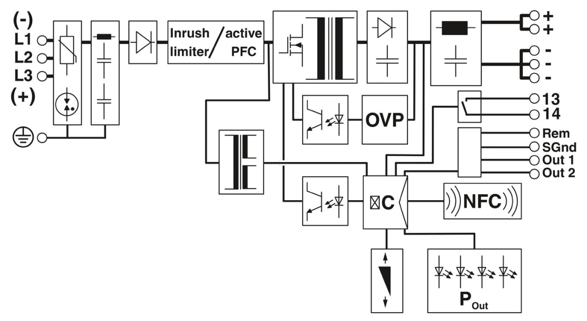 Источник питания QUINT POWER с регулированием в первичной цепи, с регулируемыми выходными характеристиками, технологией SFB (Selective Fuse Breaking) и интерфейсом NFC, вход: 3-фазный, выход: 24 В пост. тока / 20 A