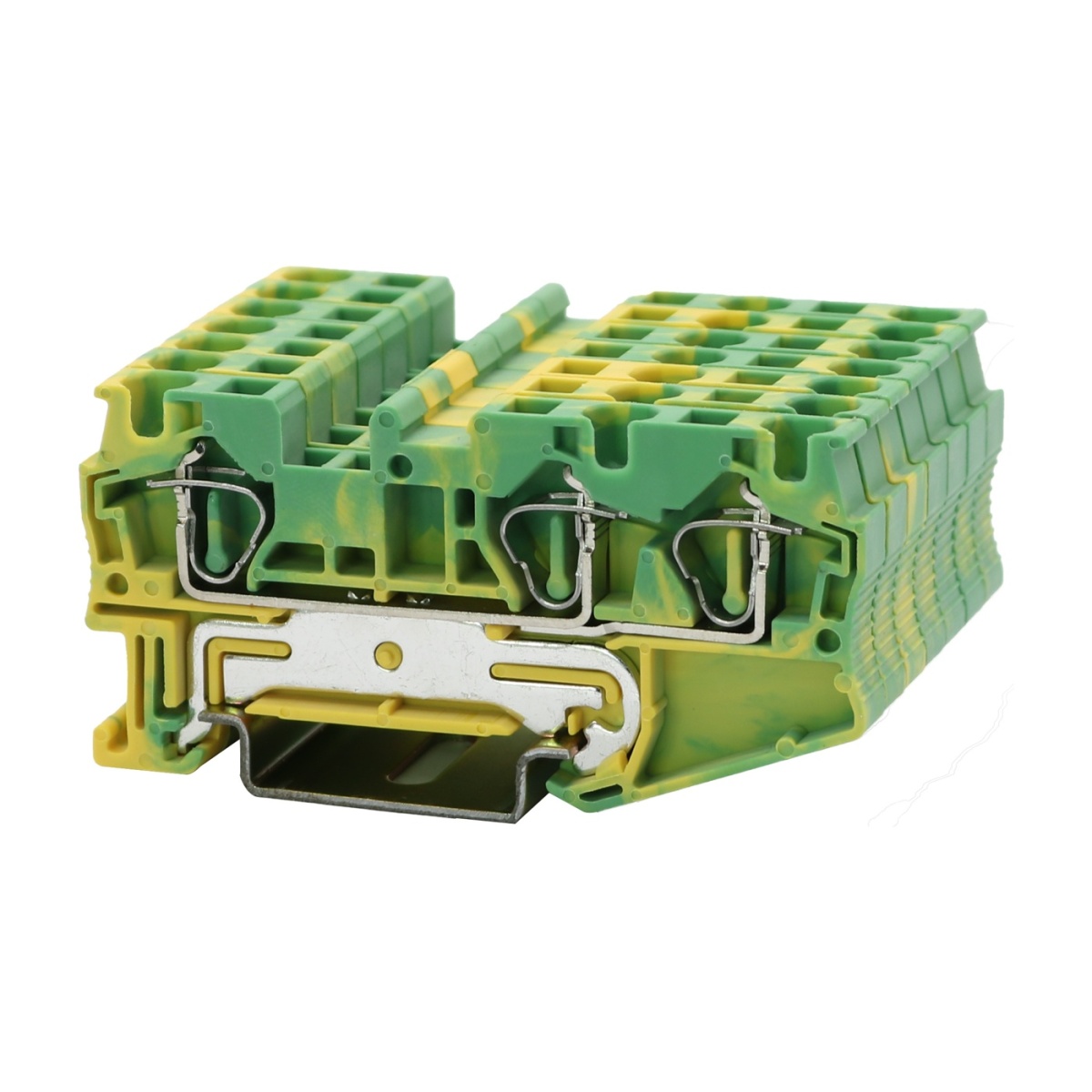 Заземляющая клемма, количество точек подсоединения: 3, тип подключения: пружинный зажим, 1 уровень, сечение: 0,2 мм² - 6 мм², тип монтажа: РМ-35/7,5, РМ-35/15, цвет: желто-зеленый