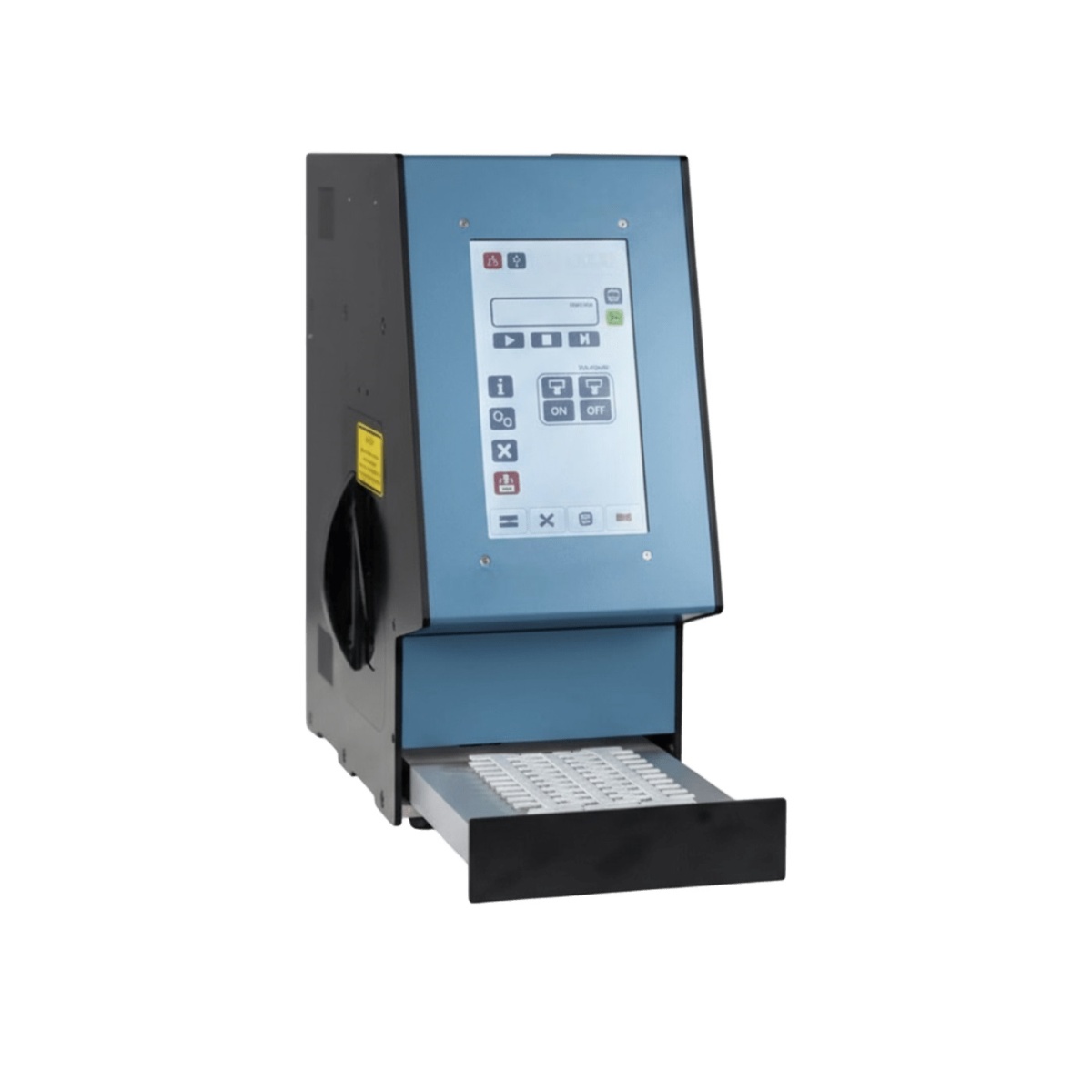 Лазерный принтер, одиночная подача пластин, длина волны 1064 нм, поле печати 120 x 120 мм, интерфейсы USB/Ethernet, питание 100–240 В AC, класс лазера 1, источник Nd:YAG (импульсный), воздухоохлаждение
