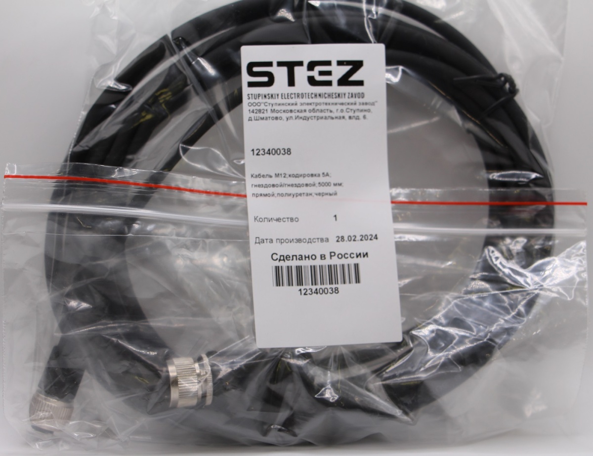 Готовая кабельная сборка M12;кодировка 5A;гнездовой/гнездовой;5000 мм;прямой;полиуретан;черный