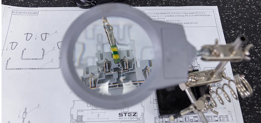 Для обеспечения быстрой и качественной сборки, ЦКР использует специализированные отрезные станки и пневматические прессы. Сборки комплектуются качественной маркировкой, выполняемой на лазерных гравюрах. Одним из главных технических преимуществ таких решений - это компонентная база, которая полностью выпускается силами Ступинского Электротехнического Завода!